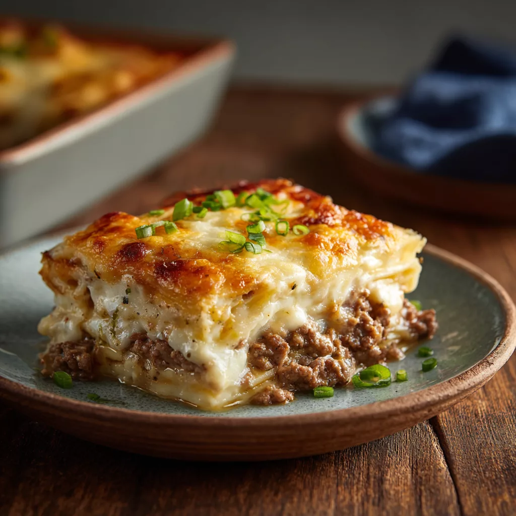 It’s packed with ground beef, breadcrumbs, Parmesan, and herbs, then topped with marinara sauce and gooey mozzarella for a perfect finish. The best part? It’s easy enough for a weeknight but impressive enough for guests. Each slice is moist, cheesy, and bursting with flavor.